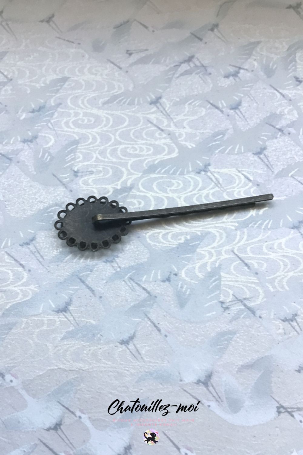 Add a refined and delicate Japanese touch to your hairstyle with this beautiful bronze-colored metal bobby pin, topped with a resin cabochon featuring traditional Japanese paper underneath.