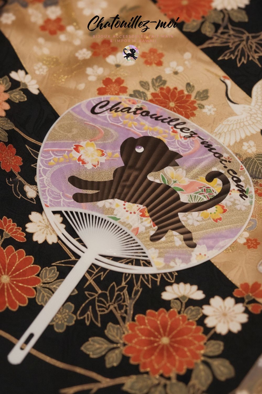 Éventail Plat Japonais Chat & Panda – Double Visuel Chatouillez-moi x Panda Kiwi